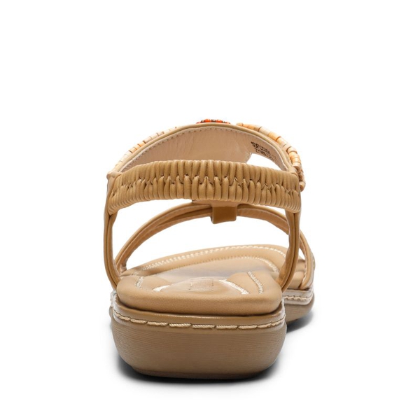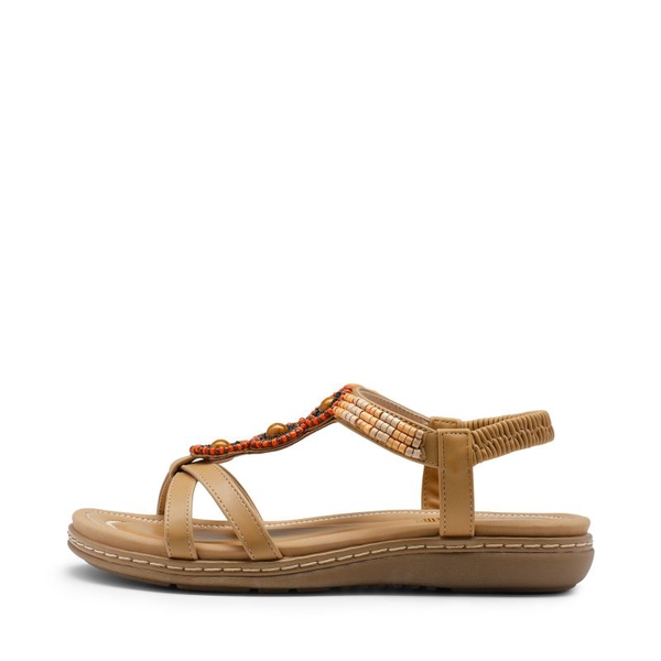 Show off your free-spirited style in these women’s bohemian flat sandals. Designed with beaded medallions and crossover straps, these sandals are perfect for pairing with long maxi dresses or jeans for a boho chic style. Wear these sandals with ease simply by slipping on with no need to adjust straps.