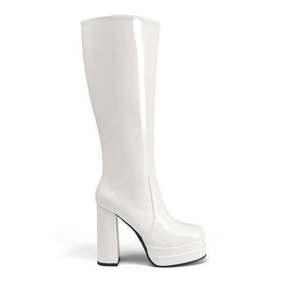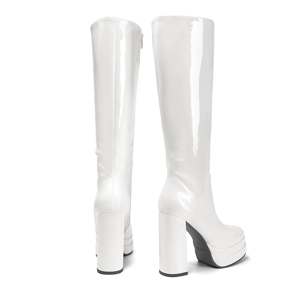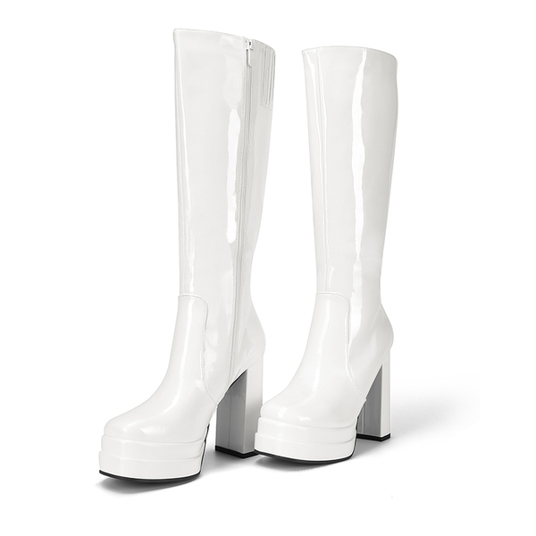 Highlighting a sleek, high-shine knee-high shaft and a substantial 4.72-inch heel, these chunky knee high platform boots let you confidently make a daring fashion statement. Walk with ease, and comfort is taken care of by the cozy jersey fabric lining and the cushioned 4mm latex insole. These boots channel Y2K aesthetics, capturing the essence of both retro and contemporary styles.