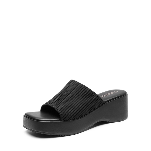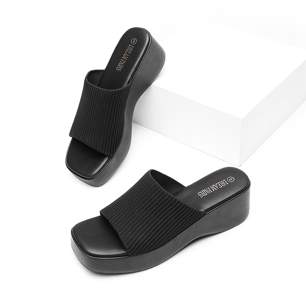 Try these knit platform sandals for a super comfortable fit. Set on a chunky platform wedge heel for stability and balance. Made with a roomy square toe for those who need a spacious fit. Easy to style with a range of outfits in your wardrobe which makes them ideal for warm-weather season.