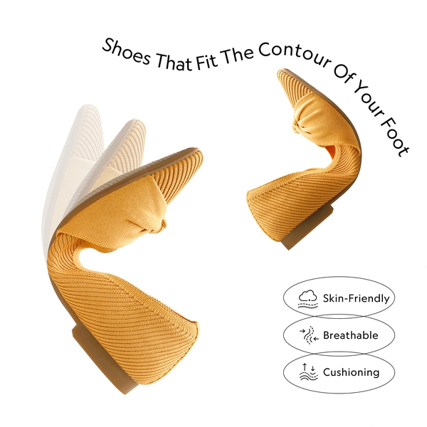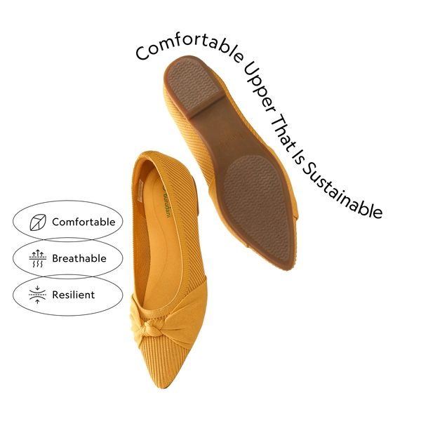 - Knitted Fabric: Crafted with soft knitted fabric made from recycled bottles, these flats allow your feet to breathe while you enjoy natural comfort with every step. Toss these knitted flats into your washing machine when you need to freshen them up.