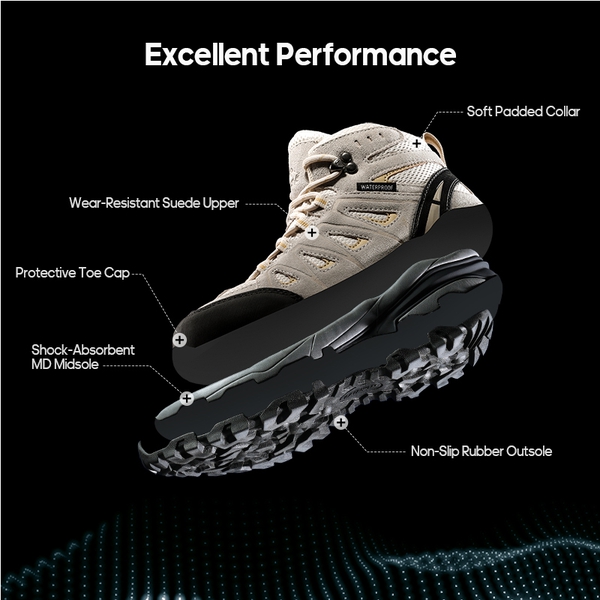These women’s lightweight hiking boots offer agility and freedom of movement on hiking trails. The mesh lining keeps your feet cool and dry, while the cushioned insole provides all-day comfort. Set on a sturdy rubber outsole, these hiking boots offer reliable traction on a range of terrains, ensuring stability and confidence. Whether you're taking on challenging treks or enjoying walks in nature, these hiking Boots are your go-to for exploring the great outdoors.