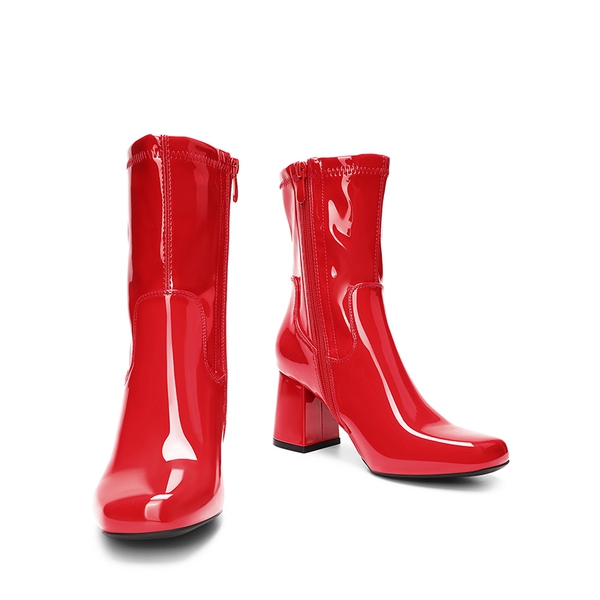 - Smooth Upper: Designed with a supple & glossy synthetic patent upper that is easy to upkeep while adding a shiny touch to your ensembles. With a 6.9-inch shaft, these mid-calf length block heel boots offer a flattering fit.
