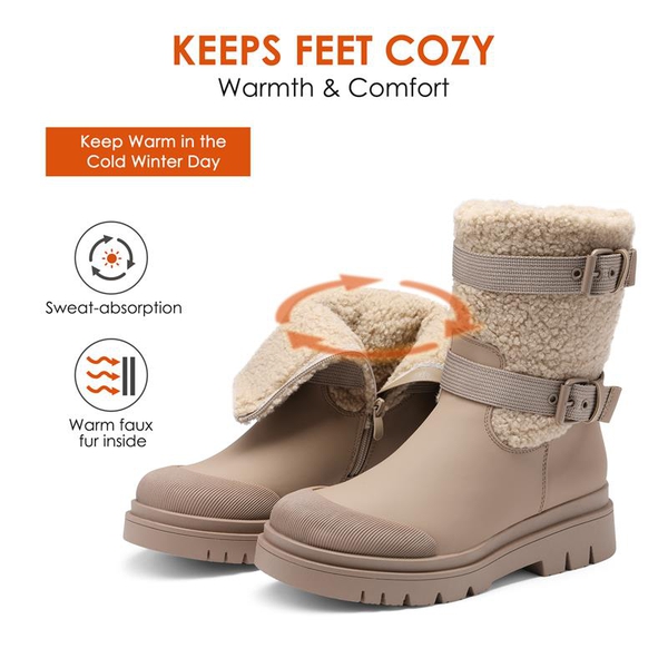 - Versatile Style: Wear these fashionable snow boots with a range of outfits for the perfect winter look. The faux sherpa detail and chunky sole make these a winter staple that will keep you looking stylish and warm.
