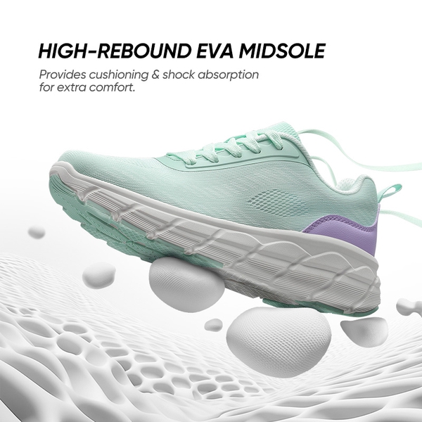 Stability & Support: The reinforced heel of these tennis sneakers for women provides stability, enhancing your running posture and effectively preventing sprains. The stability-enhancing insole, with additional arch support, helps alleviate pressure and provides support.