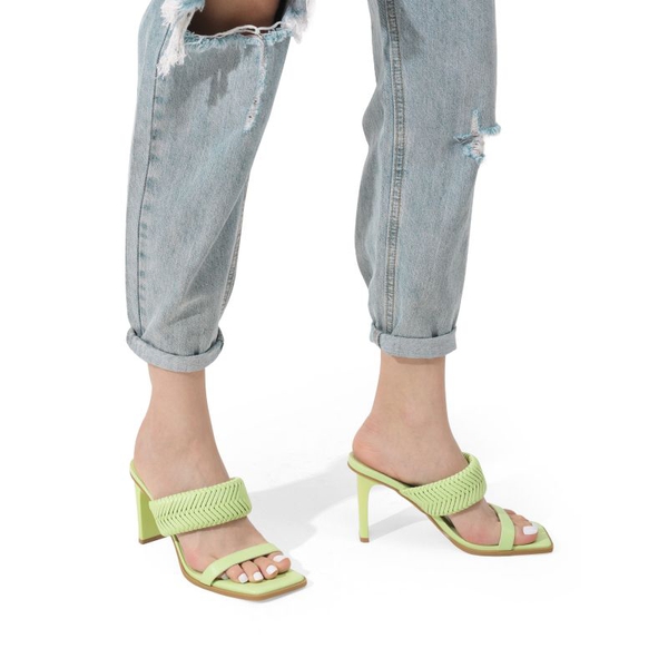 These square-toe heeled sandals showcase simplicity and modern design. The rectangular heel and braided strap give an edgy touch to your look. The bold and fresh color options allow you to show off your personality. The dual straps provide a snug fit, keeping your feet comfortably in place. Pair them with brightly-colored skirts to create a vibrant summer look.