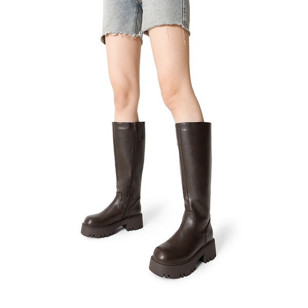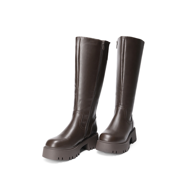 These lug-sole knee-high boots feature an inside zipper and added an elastic panel that makes it easy to slip on and off while ensuring a comfortable fit. The sleek PU upper makes it easy to clean and these knee-high boots can be worn for various occasions for a chic look.