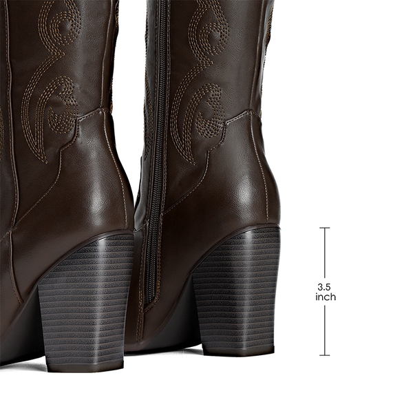 Elevate your style with a pair of embroidered cowboy boots. These western boots feature a 3.5-inch stacked heel that adds height while ensuring steady support. The side zipper design makes them effortless to slip into. The intricate embroidery adds a touch of Western flair to your outfits. Whether it's a party, a night out, or your daily casual wear, these boots are a perfect option.