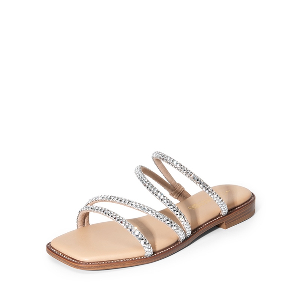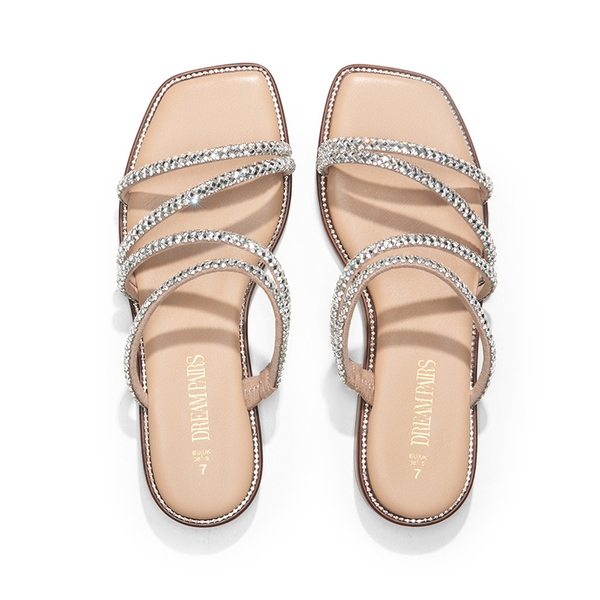 Rhinestone Straps: Elevate your style with these women's rhinestone slide sandals featuring an asymmetric sparkly strappy rhinestone upper and studded edge, perfect for showcasing your trendy looks.