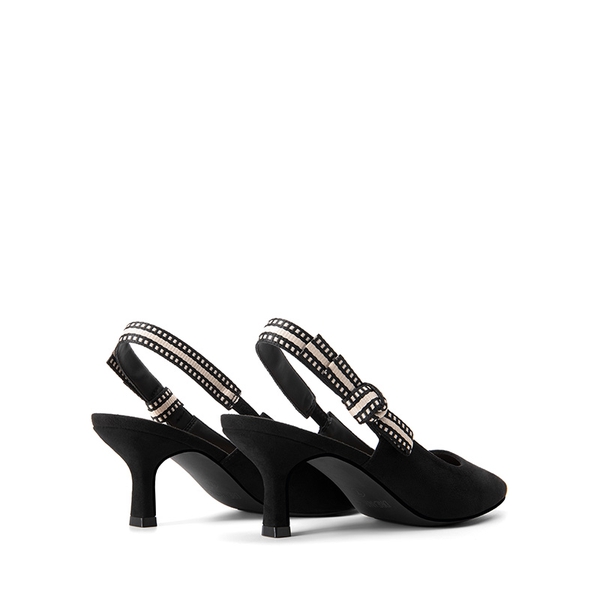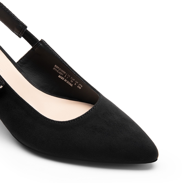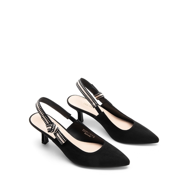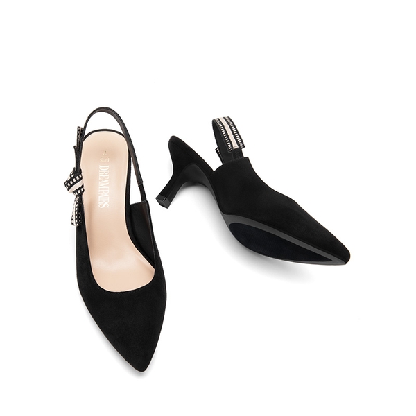 Step into timeless elegance with the Dream Pairs women's slingback pumps. The pointed-toe heels are crafted with a velvet upper for a sophisticated look. The standout feature is the side ribbon bow element, adding a touch of refined beauty to your outfit. The low kitten heel ensures comfort even after prolonged wear, making these shoes perfect for various occasions. The open-back design subtly exposes the ankle lines, enhancing your original elegant look.