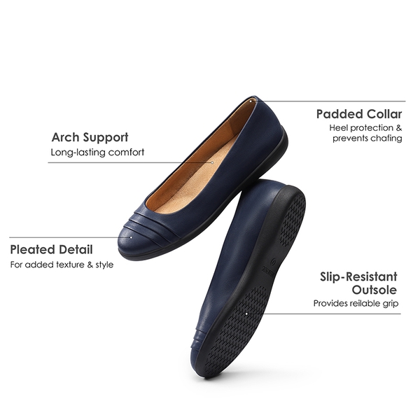 Timeless and easy-to-wear slip-on arch-support flats for women embody versatility. They seamlessly pair with casual dresses, office ensembles, or even more formal attire. With cushioned heels, integrated arch support, and an outsole designed for optimal traction, these slip-on arch support flats offer a comfortable walking experience. They effortlessly cater to your everyday needs, ensuring both style and comfort.