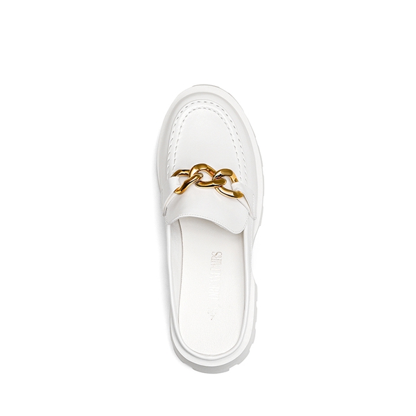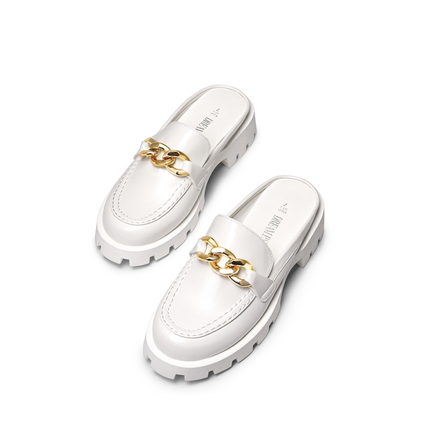 This pair of loafers with gold chain fuses the classic look of loafers with the ease of wearing of mules in one. Crafted from sleek PU uppers and anchored by slip-resistant lug soles, these loafer mules are designed for both style and stability. You'll feel the comfort the moment you slip these loafer mules on thanks to the padded PU insole and soft lining. Elevated with chic gold chain accents across the vamps, let these mules be the finishing touch to a put-together look.