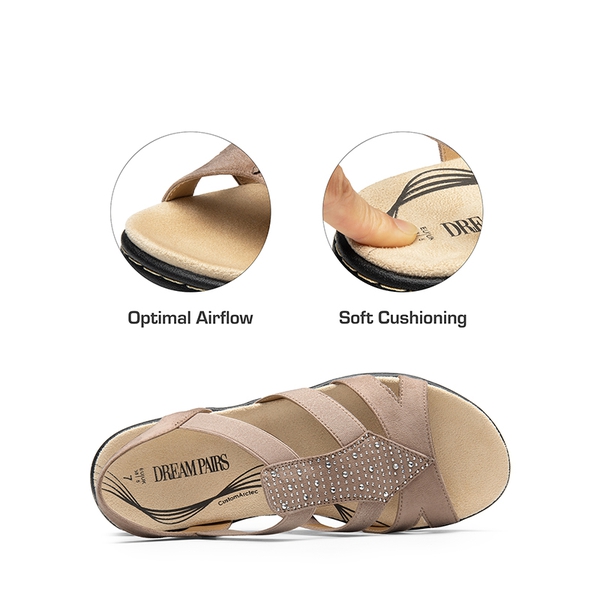 Liberate your feet and treat them with these strappy sandals. The dual-density EVA footbed is soft and shock-absorbing, providing ergonomic arch support and comfort for busy days. With a skin-friendly midsole and adorned with sparkling rhinestones on the upper, these sandals give a stylish look while delivering a soft, comfortable feel with every step. The elastic straps guarantee a secure fit and accommodate different foot shapes.