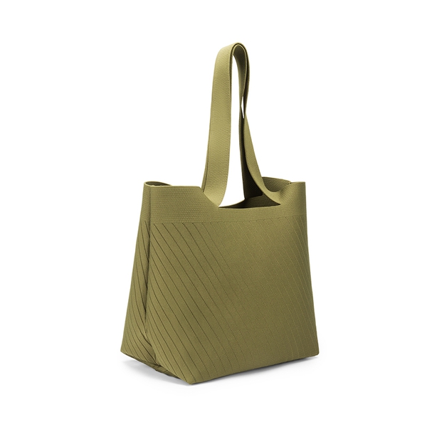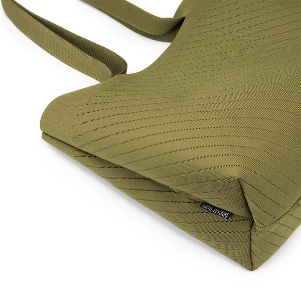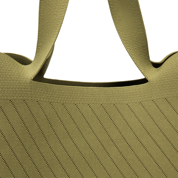 Elevate your style sustainably with this sustainable knitted tote bag. Crafted from threads derived from recycled plastic bottles, seamlessly blending style with functionality.