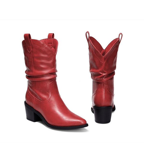 Pursue a Western-inspired style with these exquisite V-cut cowboy boots. Designed with a v-cut cuff that accentuates your leg line and provides a flattering fit. The soft jersey fabric lining, combined with a cushioned insole ensures comfort with every step you take. Elevate your wardrobe and give your outfits a Western touch.